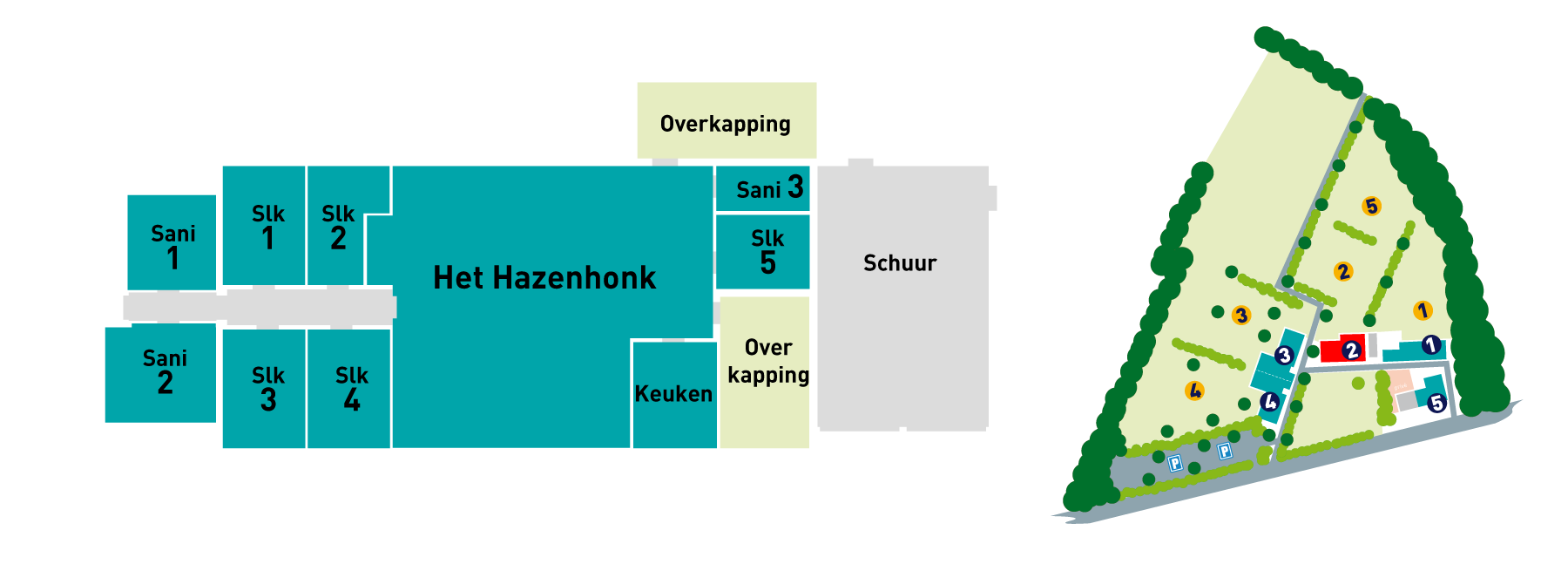 Een in 2025 volledig verbouwde groepsaccommodatie voor maximaal 60 personen. De nieuwe glazen pui zorgt voor een prachtig uitzicht op het speelveld en de uitlopers van het bos. De liggen namelijk letterlijk naast deze accommodatie.