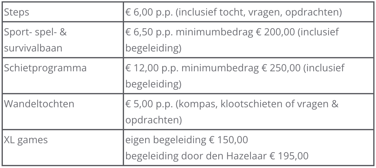 Het Hazenhonk: bovengenoemde prijzen zijn tot 30 personen;